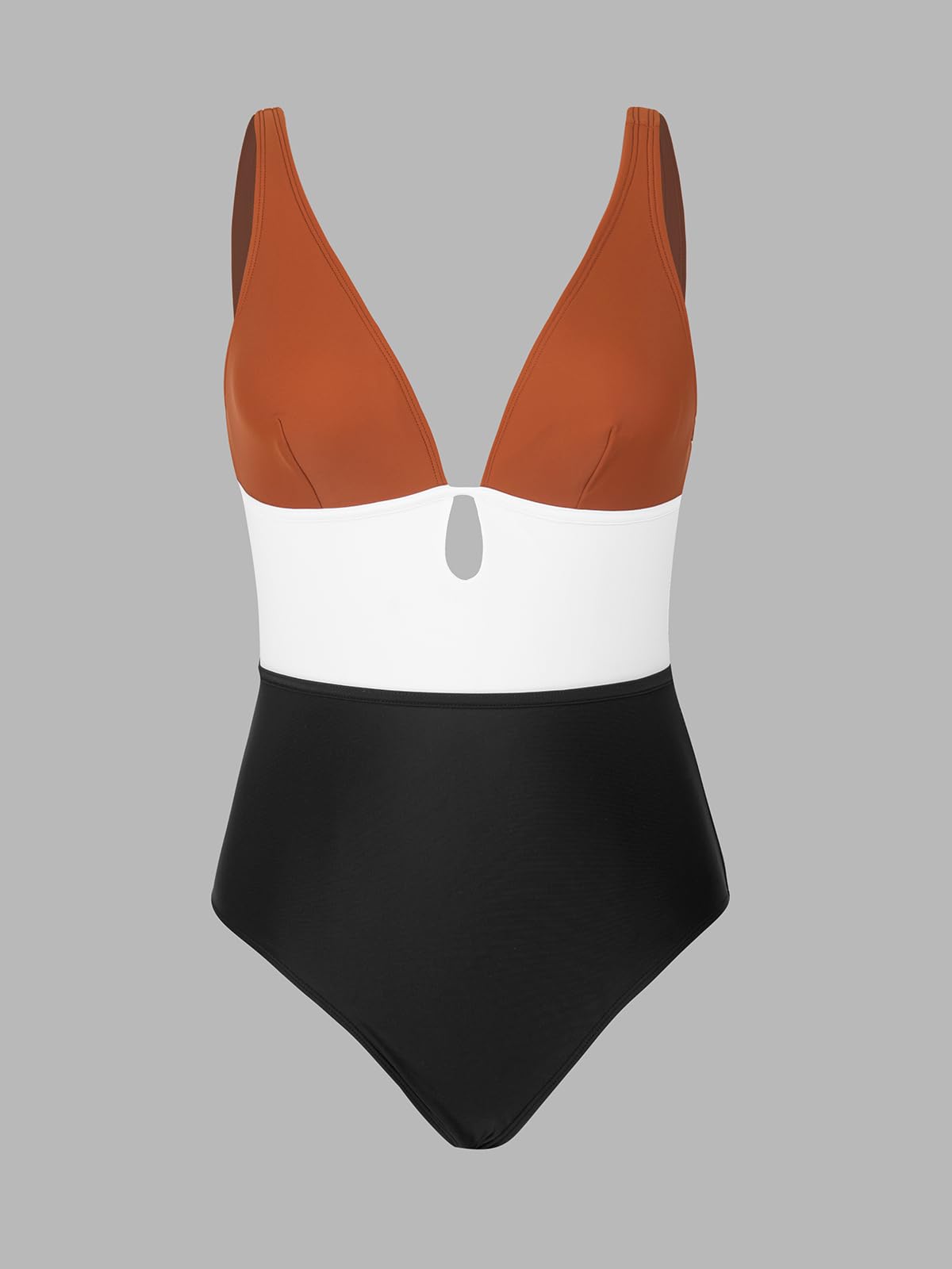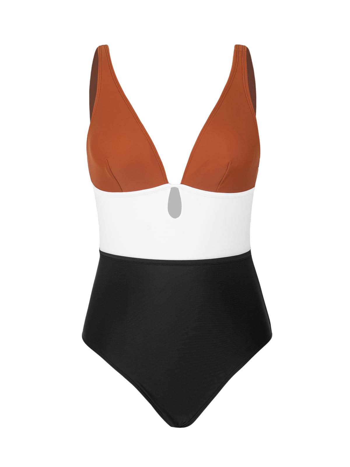 CUPSHE Women's One Piece Swimsuit Color Block Keyhole Cutout Bathing Suit M, Brick Red
