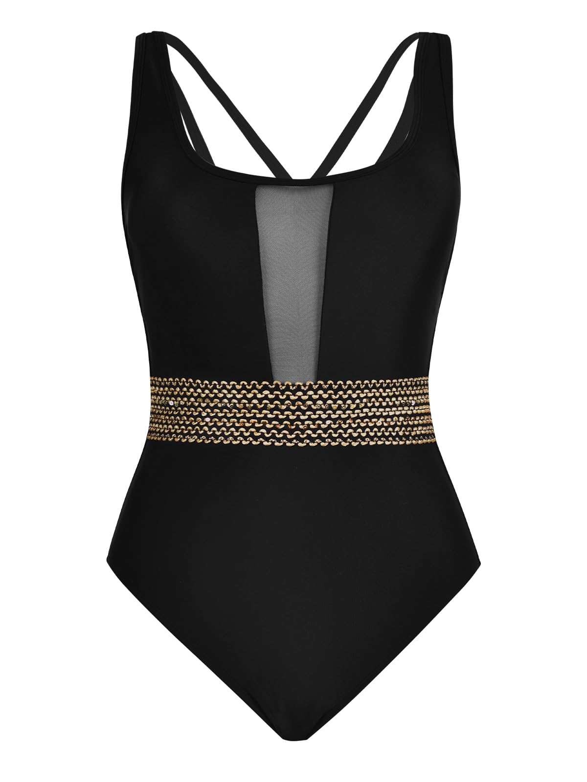 • Design: This slimming one piece swimsuit featuring with scoop neck, mesh detail and back crisscross.With its built-in tummy control, it offers both comfort and support. Adding a dash of glamour, the metallic stitching highlights the design, making it a perfect blend of style and practicality.
