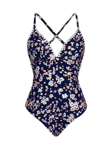 • Design: This One Piece Swimsuit Features Deep V Neck with Stitching Design Make You Looks Flattering. Floral Print Bathing Suit Design with Adjustable Straps and Lace up Can Make You Feel Comfortable.About cup style: with removable pads.