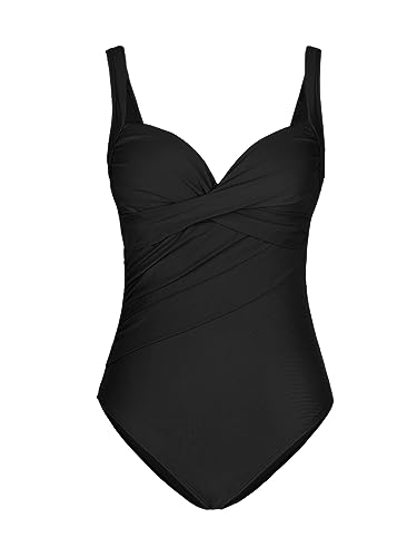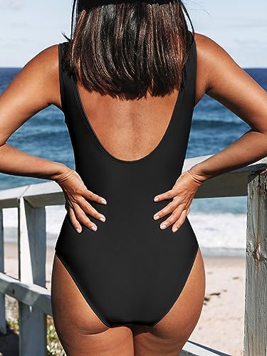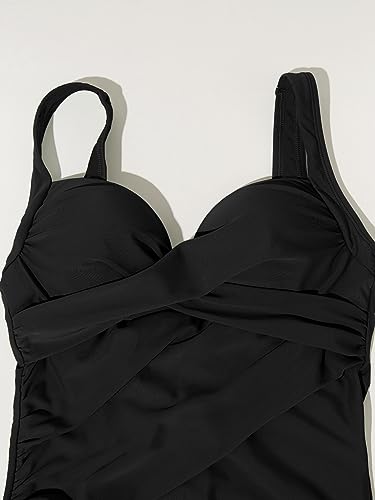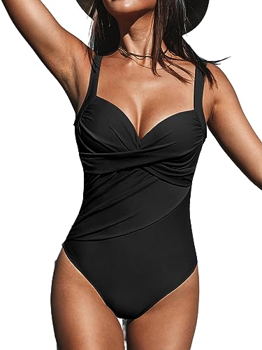 CUPSHE Women's One Piece Swimsuits Bathing Suits V Neck Twist Ruched Wide Straps U Back Tummy Control, M Black