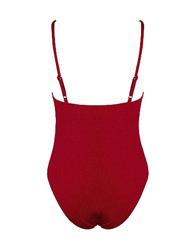 CUPSHE Women's One Piece Swimsuits Deep V Neck Cutout Adjustable Straps Texture M, Red