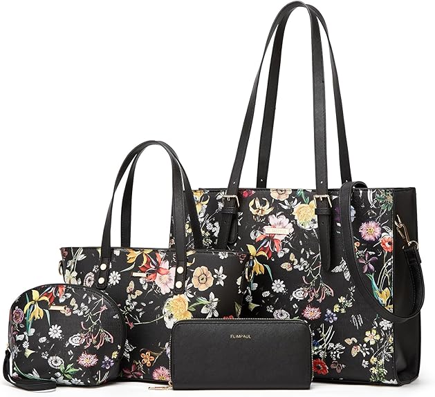 Women Fashion Synthetic Leather Handbags Tote Bag Shoulder Bag Top Handle Satchel Purse Set 4pcs