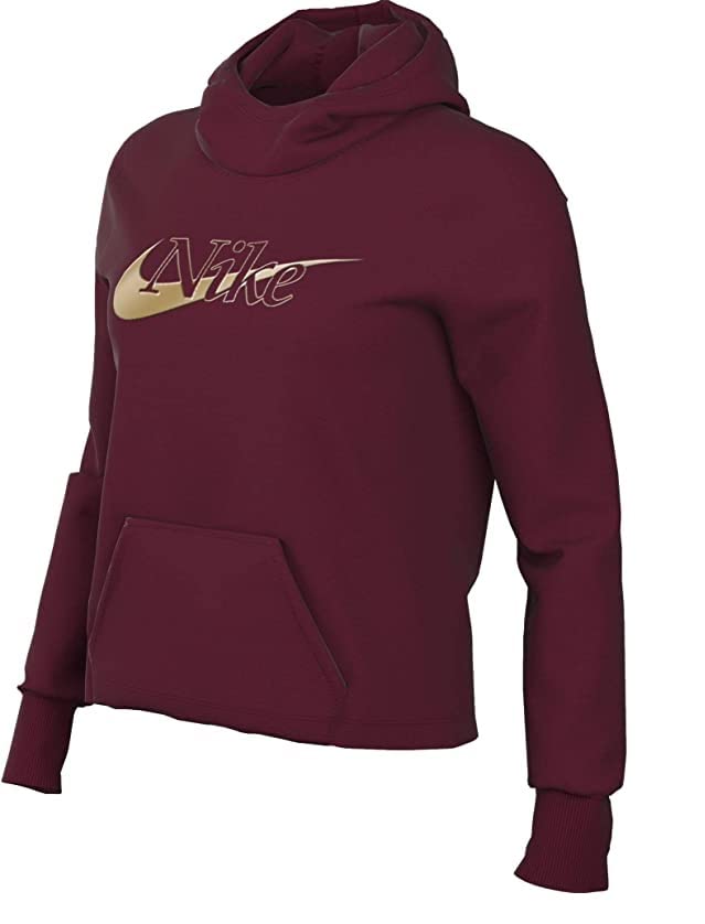 Nike Women's Sportswear Essential Pullover Fleece Hoodie (as1, alpha, s, regular, regular, Beetroot) Carmesi/Gold