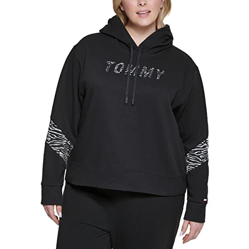 Tommy Hilfiger Sport Womens Plus Logo Animal Print Hoodie Black 3X