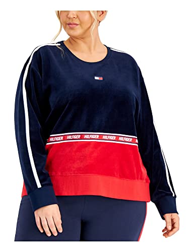 Tommy Hilfiger Women's Sport Plus Velour Fitness Sweatshirt, Navy/Red, 3X