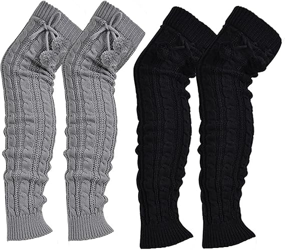 HUAMULAN Women Long Leg Warmers Winter Bohemian Cover Boot Cuffs Knit Crochet Over Knee Christmas Boho