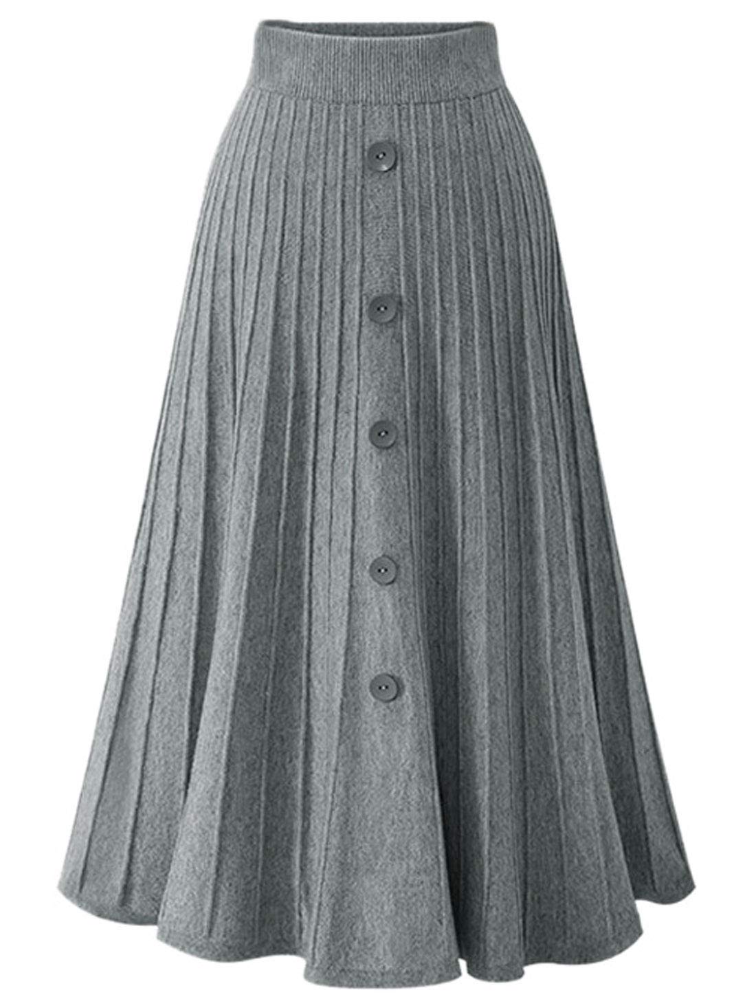 ebossy Women's Elegant Button Front A-Line Swing Flared Midi Long Knitted Sweater Skirt (X-Large, Grey)