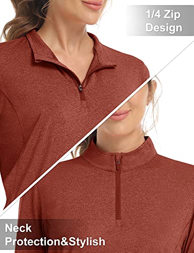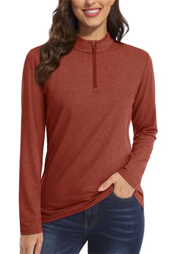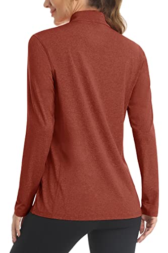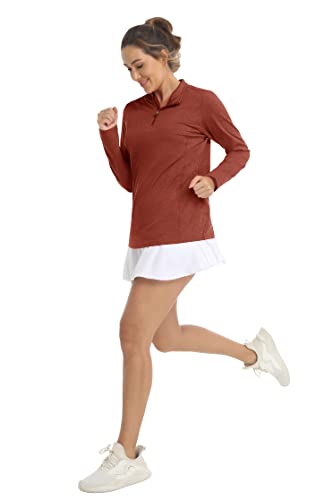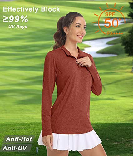 MAGCOMSEN Women's Athletic Shirts Tees Breathable UV Shirt Long Sleeve Tennis Golf Shirts Quick Dry Collared Shirts Dark Orange,M