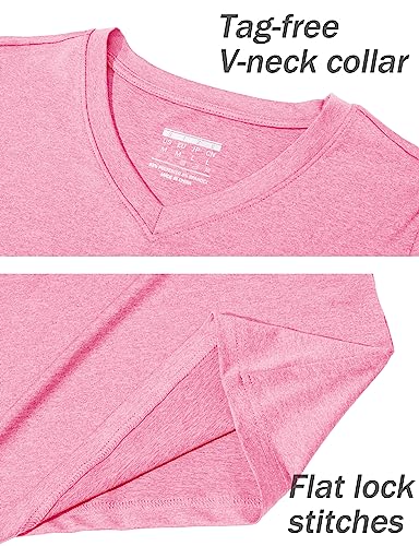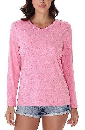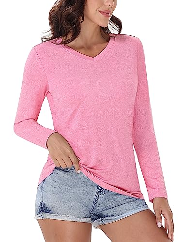 MAGCOMSEN Women's Rash Guard Long Sleeve Running Shirts V Neck Tennis Golf Shirts UV Protection T-Shirts Pink,M