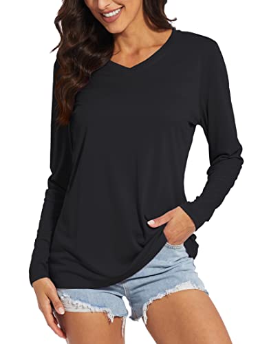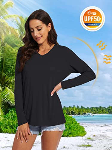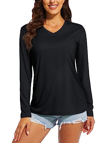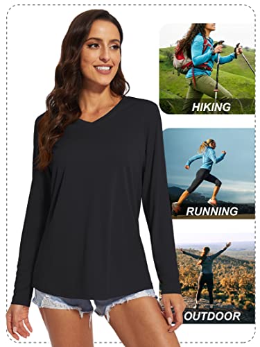 SPF Shirts for Women Summer Shirts UPF 50+ Sun Protection Shirts Long Sleeve Shirts Quick Dry Running Shirts Women Outdoor Hiking Shirts Black