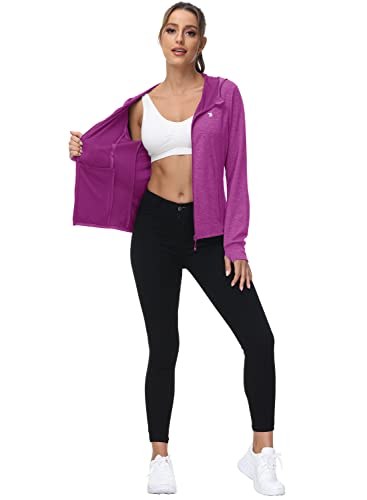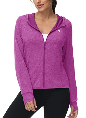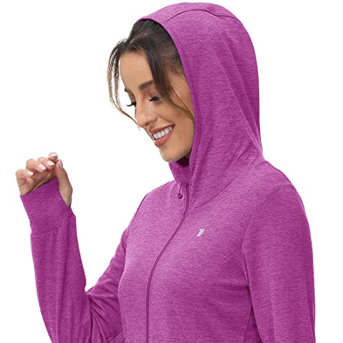 TBMPOY Womens UPF 50+ Sun Protection Hoodie Jackets Light Weight Long Sleeve Shirts Hiking Outdoor Full Zip Tops Purple S