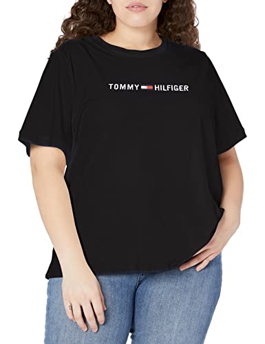 Tommy Hilfiger Women's Plus Short Sleeve Crew Neck Logo T-Shirt, Jet Black, 1X