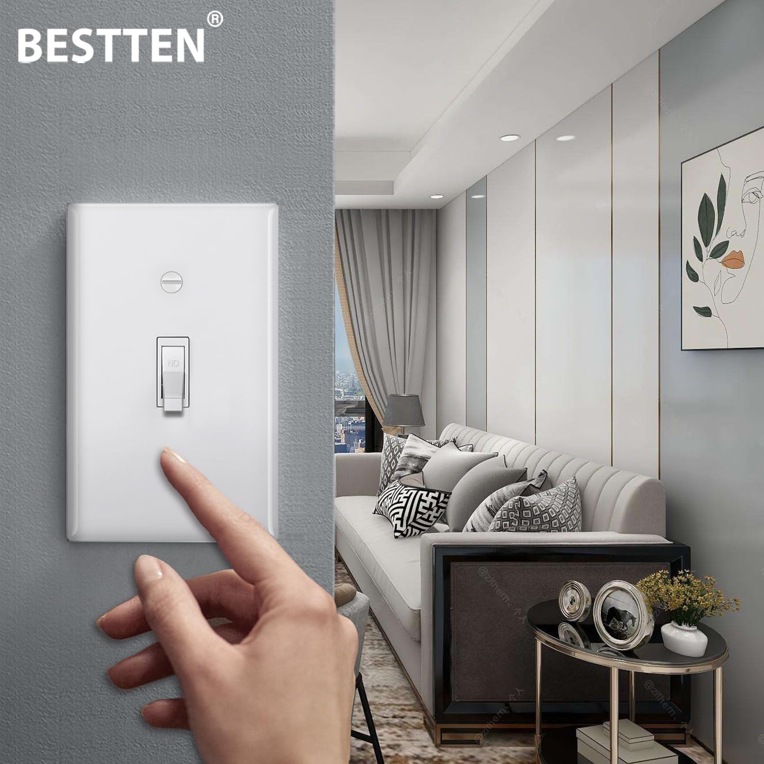 [10 Pack] BESTTEN Single-Pole Toggle Light Switch with Wallplate, 15A, 120V, UL Listed, White