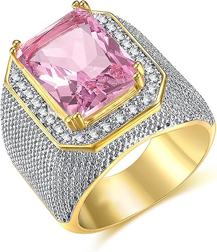 10K 14K 18K 20K Solid Gold 2ct Mens Pink Tourmaline Rings Baguette Pink Tourmaline Engagement Ring for Men Thumb Men Gold Rings Father_ã_s Day Gifts for Husband Father Grandpa Size #US 4-15