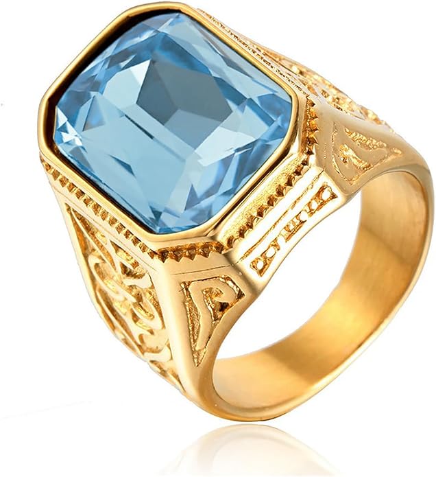 10K 14K 18K 20K Solid Gold Mens Blue Topaz Rings 2ct Baguette Blue Topaz Ring for Men Thumb Men Gold Rings Father_ã_s Day Gifts for Husband Father Grandpa Size#US 4-15