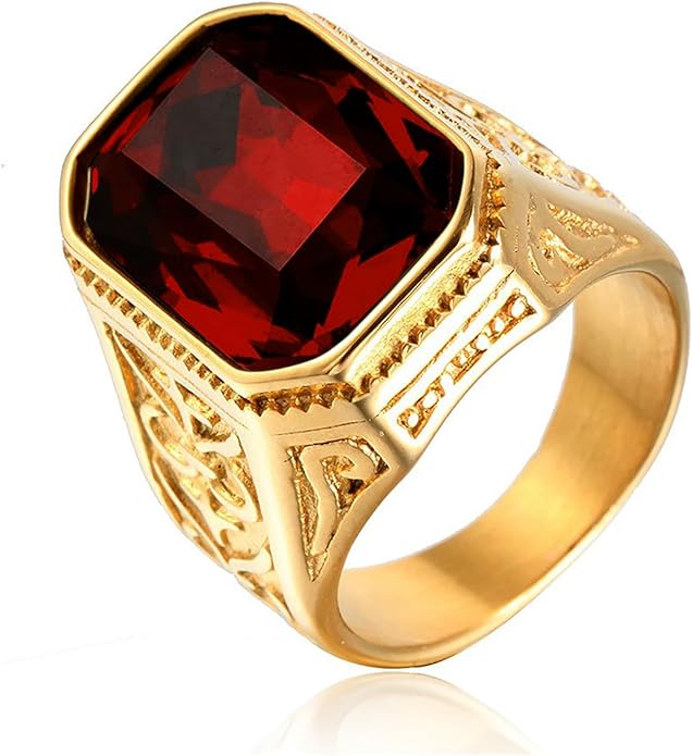 10K 14K 18K 20K Solid Gold Mens Garnet Rings 2ct Baguette Garnet Ring for Men Thumb Men Gold Rings Father_ã_s Day Gifts for Husband Father Grandpa Size#US 4-15