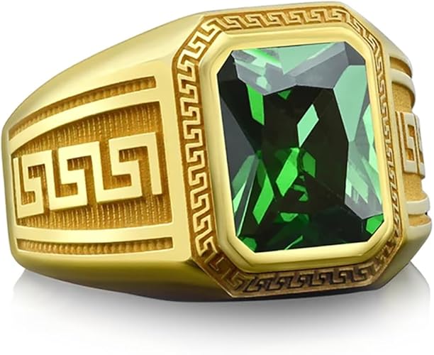 10K 14K 18K Solid Gold Emerald Rings for Men Yellow Gold Luxury Jewelry Men's Signet Ring with 1CT Emerald Gifts Statement Engagement Anniversary Ring for Him Men_ã_s Jewelry Size 4-16