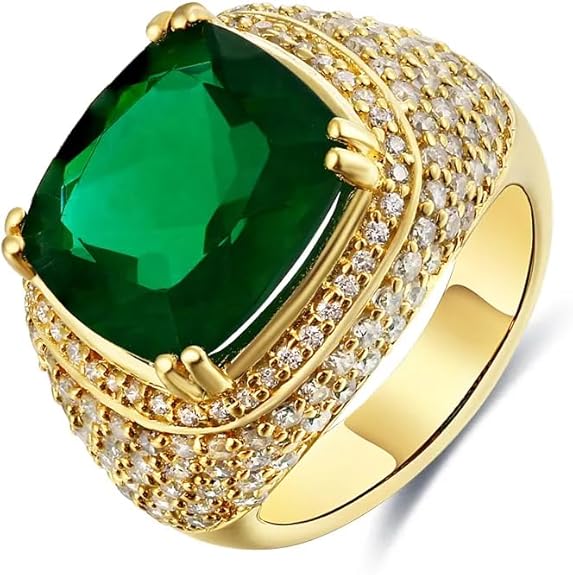 3CT Emerald Ring for Men 10K/ 14K/ 18K Solid Real Yellow Gold Ring for Men Handmade Men's Ring Luxury Jewelry Men's Ring with Square Emerald Gemstone Gifts Engagement Ring Promise Ring for Him Men_ã_s Fine Luxury Jewelry Size 4-16