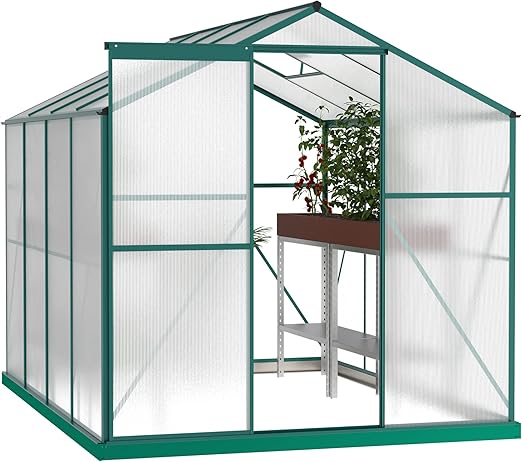 8x6 Ft Greenhouses for Outdoors, Outside Heavy Duty Walk in Green House for Garden Plants, UV Protection Adjustable Roof Vent, Thermostatic Waterproof and Insect Resistant, Green