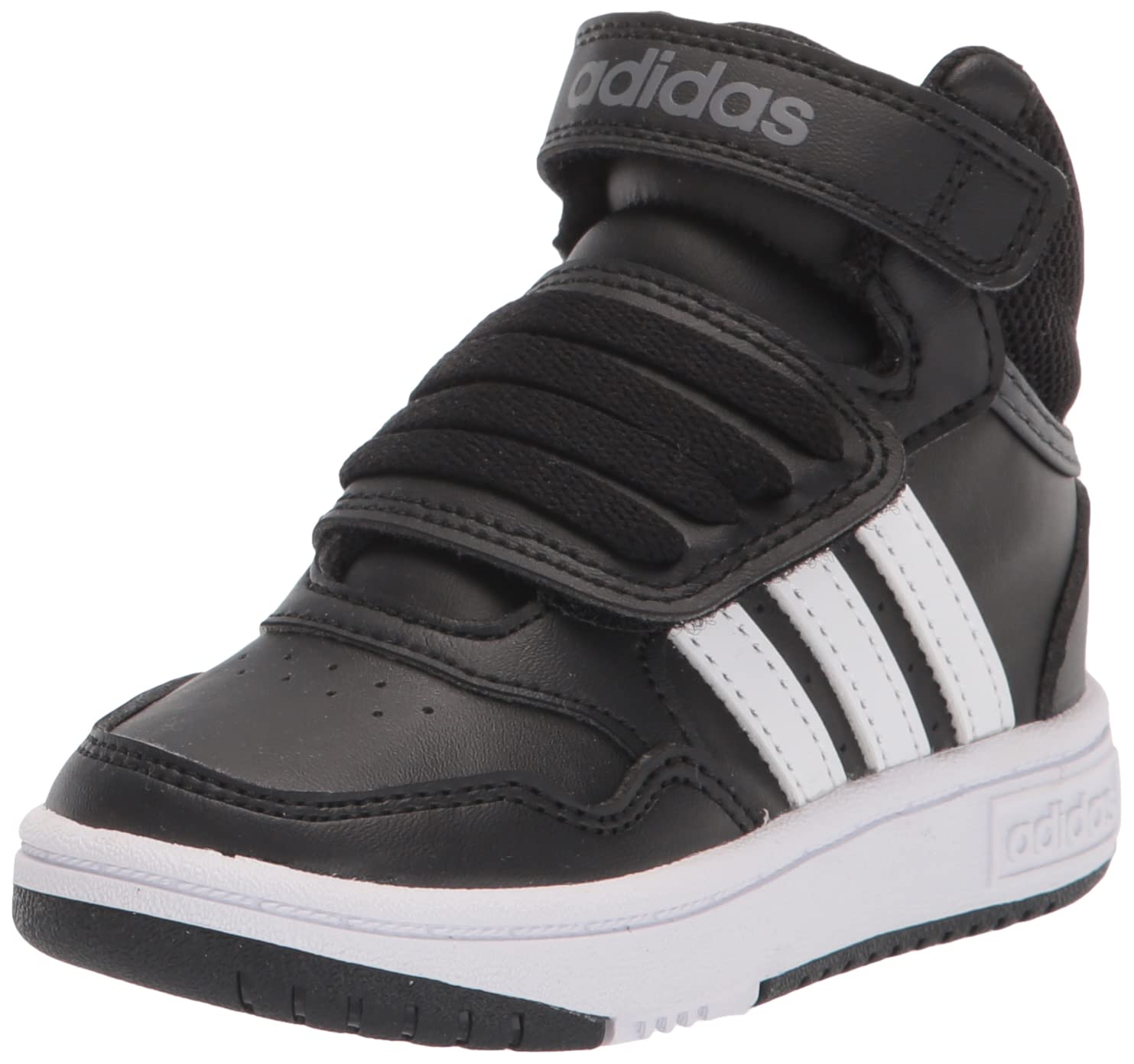 adidas Hoops Mid Top Basketball Shoe, Black/White/Grey, 5 US Unisex Big Kid