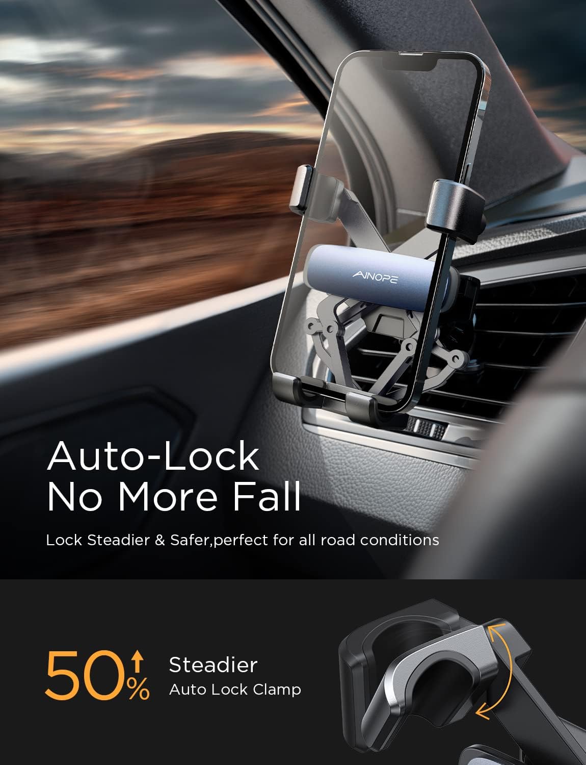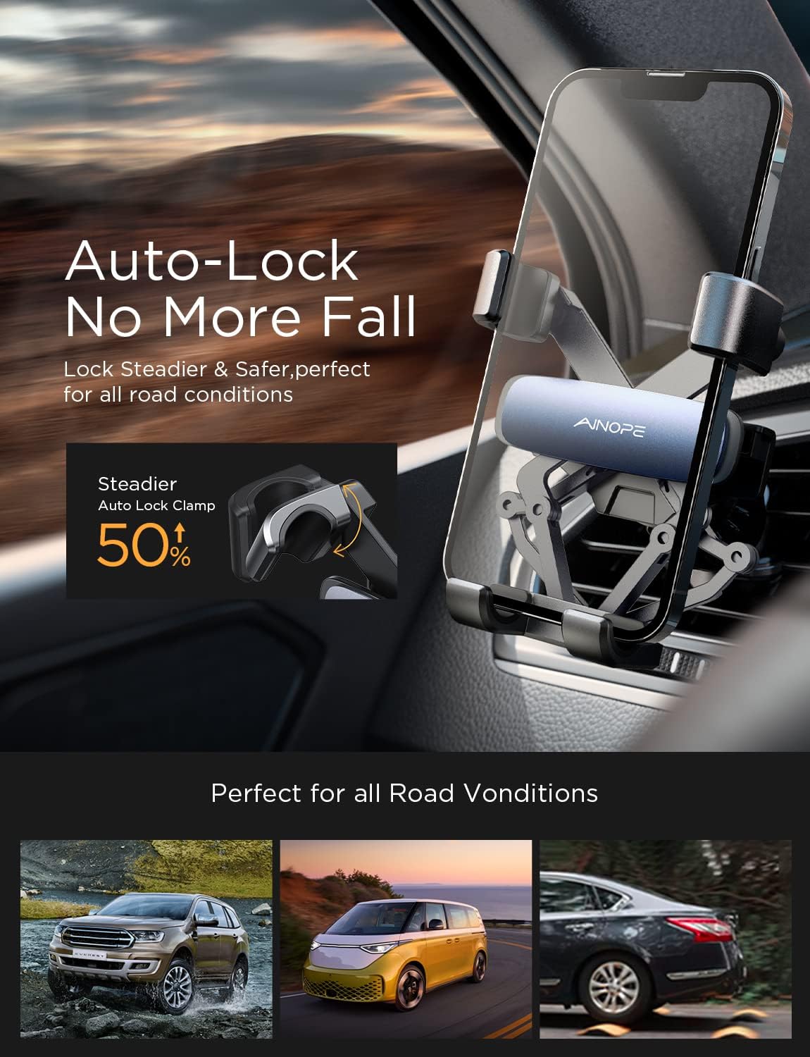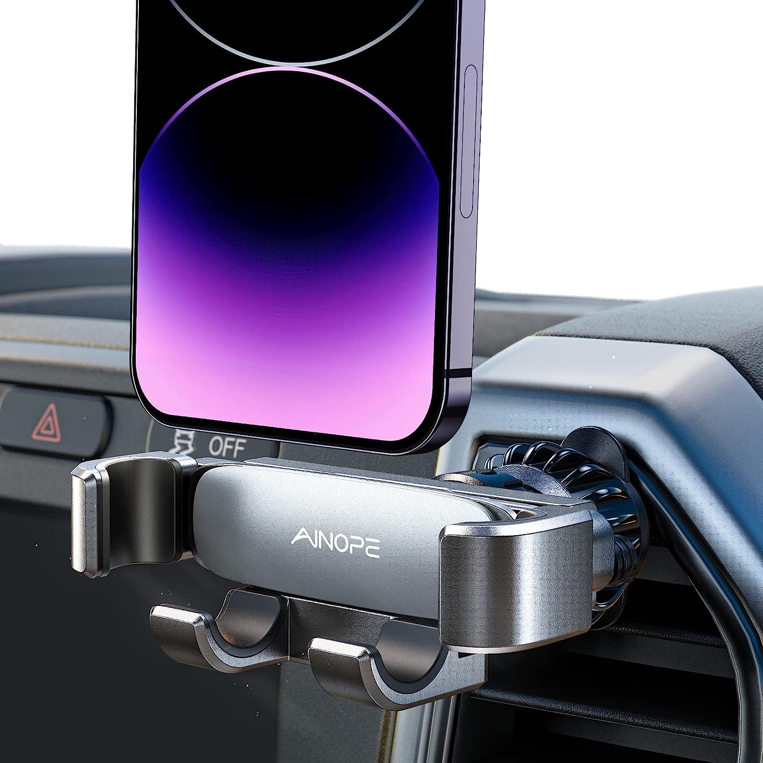 AINOPE Car Phone Holder Mount 2023 Upgrade Gravity Car Phone Mount with Newest Air Vent Clip Auto Lock Hands Free Cell Phone Holder Mount for Car Compatible for iPhone 14 Pro Max 13 12 & All Phones