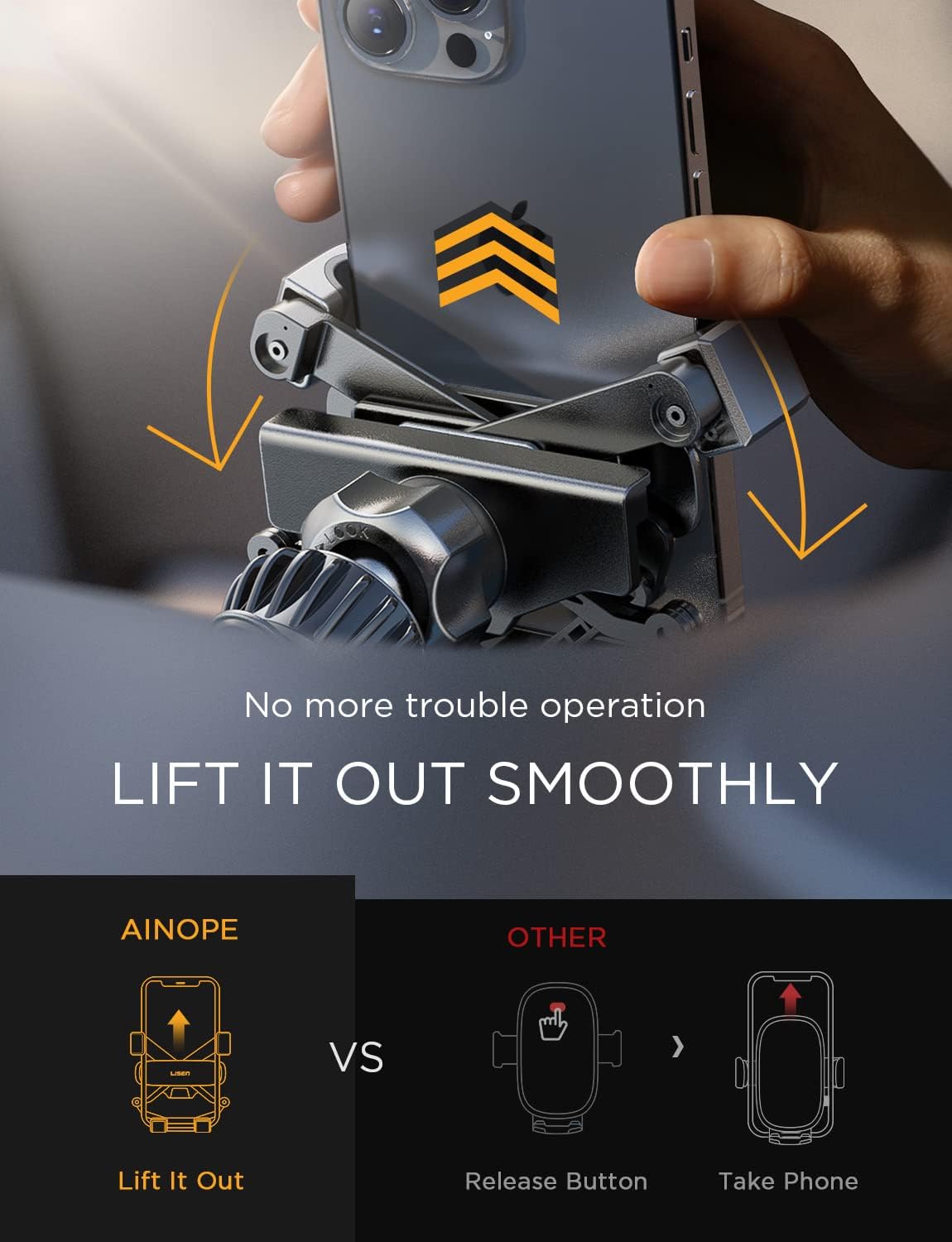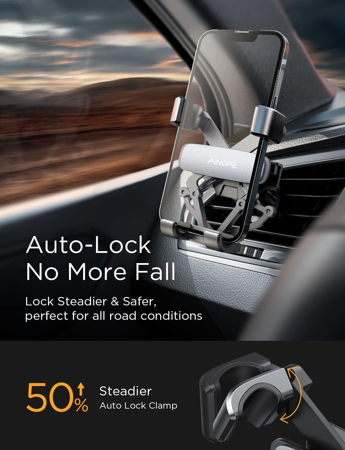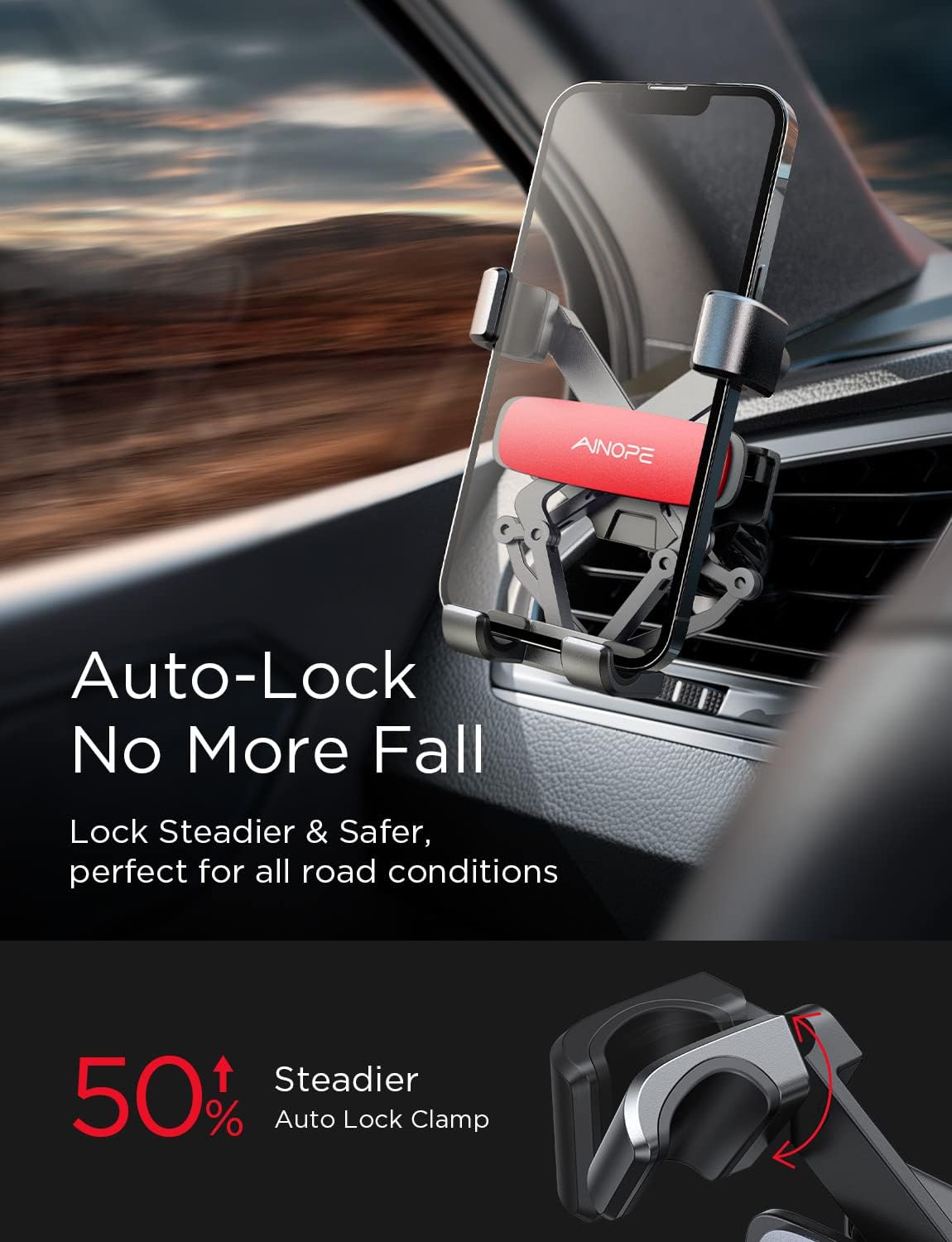 AINOPE Car Phone Holder Mount 2023 Upgrade Gravity Car Phone Mount with Newest Air Vent Clip Auto Lock Hands Free Cell Phone Holder Mount for Car Compatible for iPhone 14 Pro Max 13 12 & All Phones