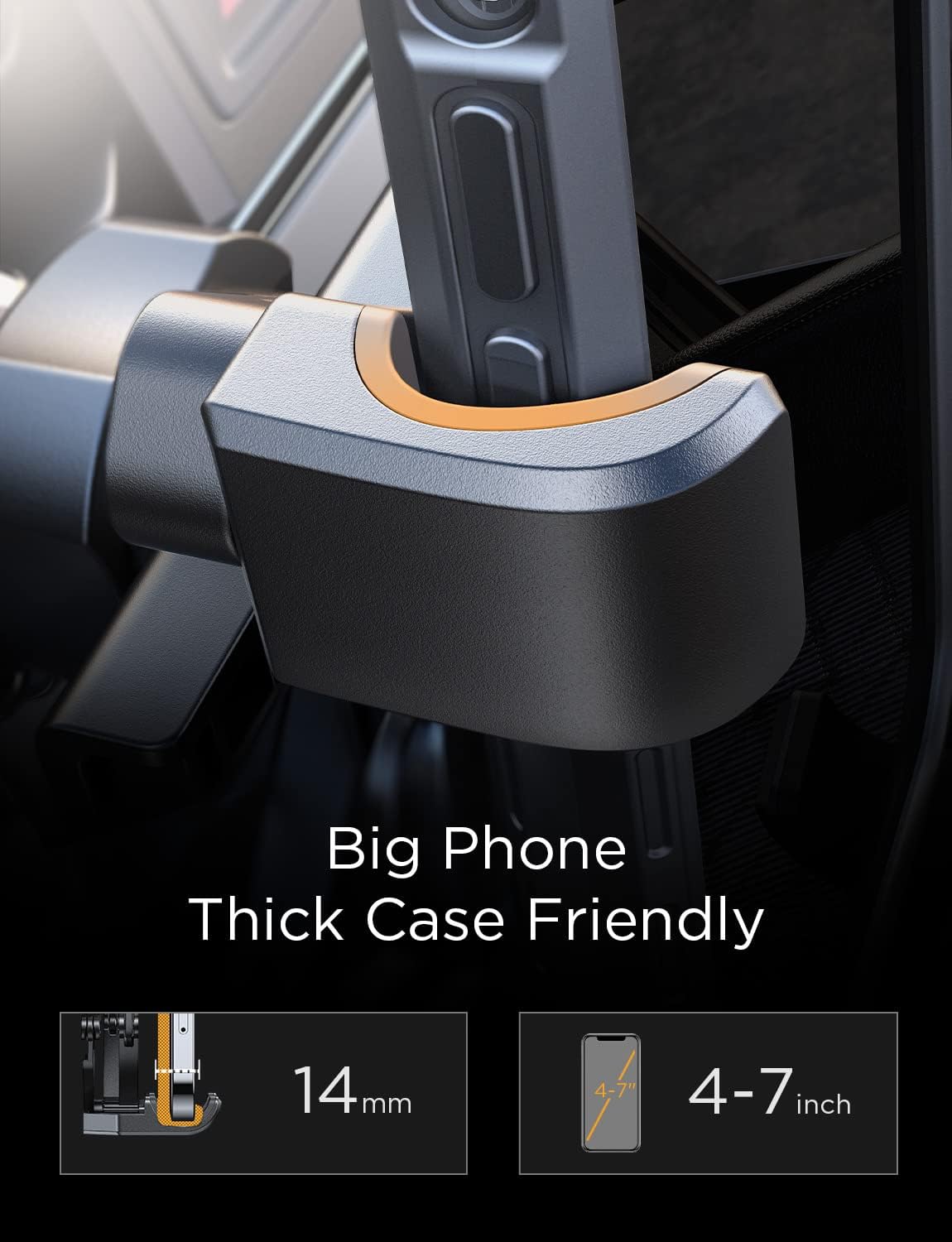 • 👍 UNIVERSAL COMPATIBILITY: This universal car cell phone holder will firmly hold all the smart phones (4-7in) even with thicker case (≤14mm) compatible with iPhone 13 12 pro max/ 11 pro max/XR/X/8/7/6/5, Note 20 10/ Galaxy S10+/ S9/ S8 /S7 /S6 and more. NOTE:WE RECOMMEND USING THE SMALLER PHONE(<4.7inch) WITH PHONE CASE