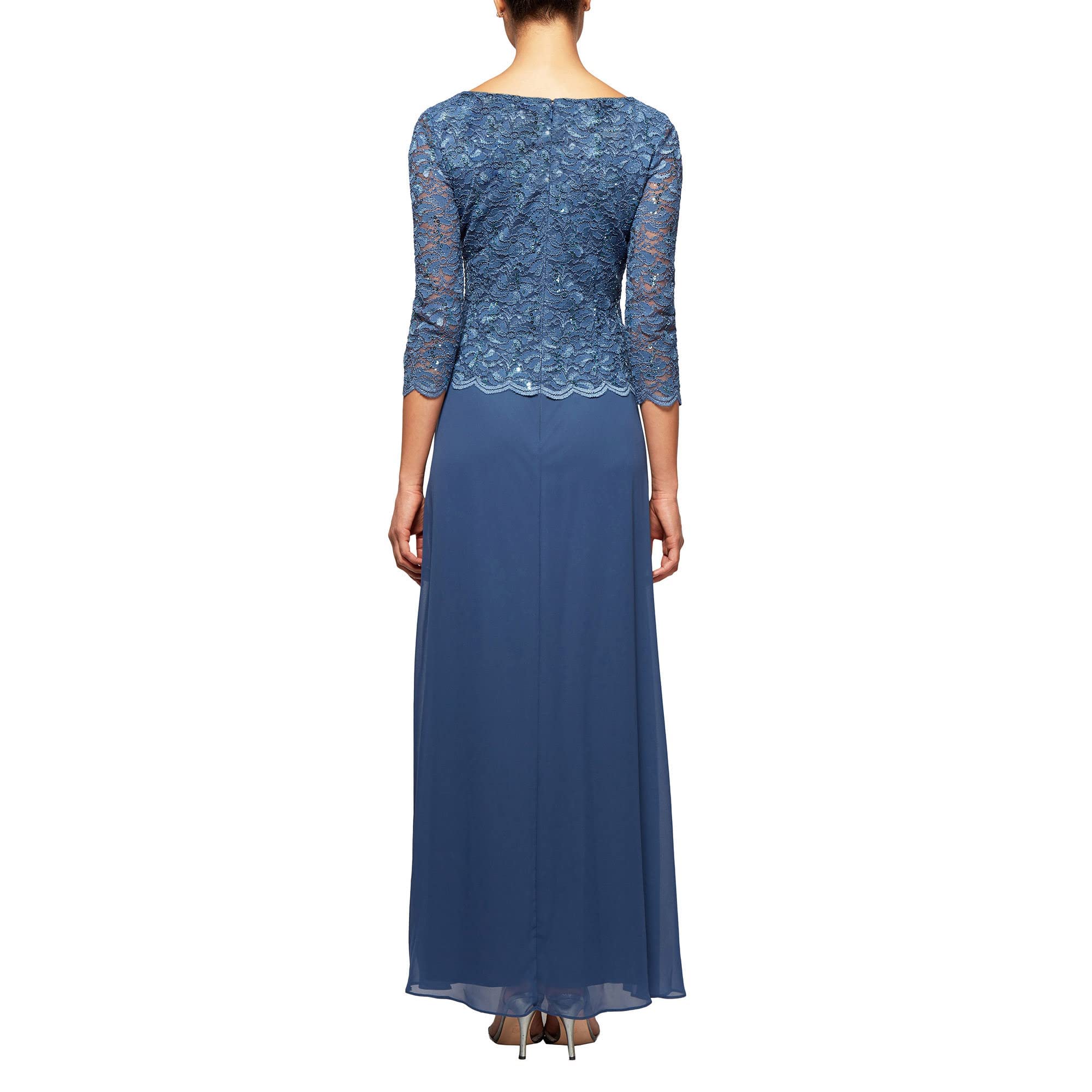 Alex Evenings Women's 3/4 Sleeve Stretch Lace Bodice Mock One Piece Gown, Wedgewood, 12P