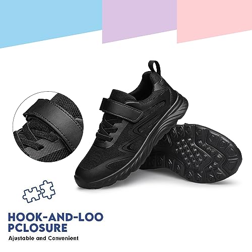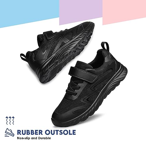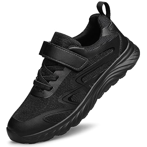 AMANSSE Boys Girls School Shoes Kids Sneakers Athletic Running Tennis Walking Shoes Black Big Kid Size 4