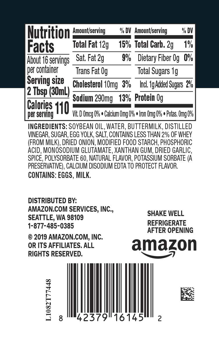 Amazon Brand - Happy Belly Buttermilk Ranch Dressing, 16 Fl Oz