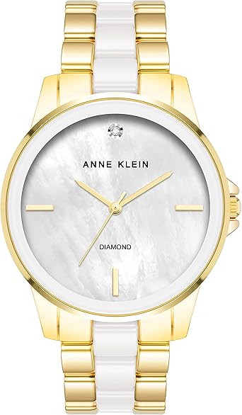 Anne Klein Women's Genuine Diamond Dial Ceramic Bracelet Watch, AK/4120
