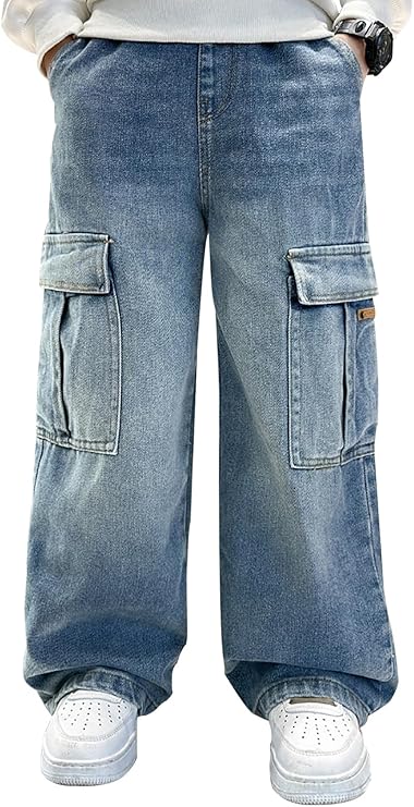 BINPAW Boys Straight Leg Casual Cargo Jeans for Kids 5-15 Years