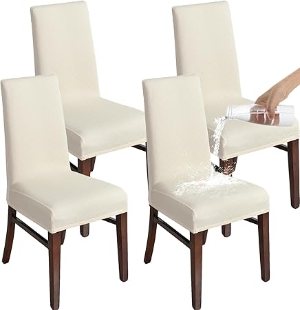 Chair Covers for Dining Room Set of 2/4/6, Stretch Jacquard Dining Chair Slipcover Covers, Removable Washable 100% Waterproof Chair Covers (Rhombic Cream, 4 Pieces)