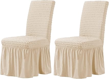 CHUN YI Dining Chair Covers Set of 2, Universal Stretch Dining Room Chair Covers with Skirt, Removable Parsons Chair Slipcover for Kitchen Wedding Party Banquet (Light Khaki)