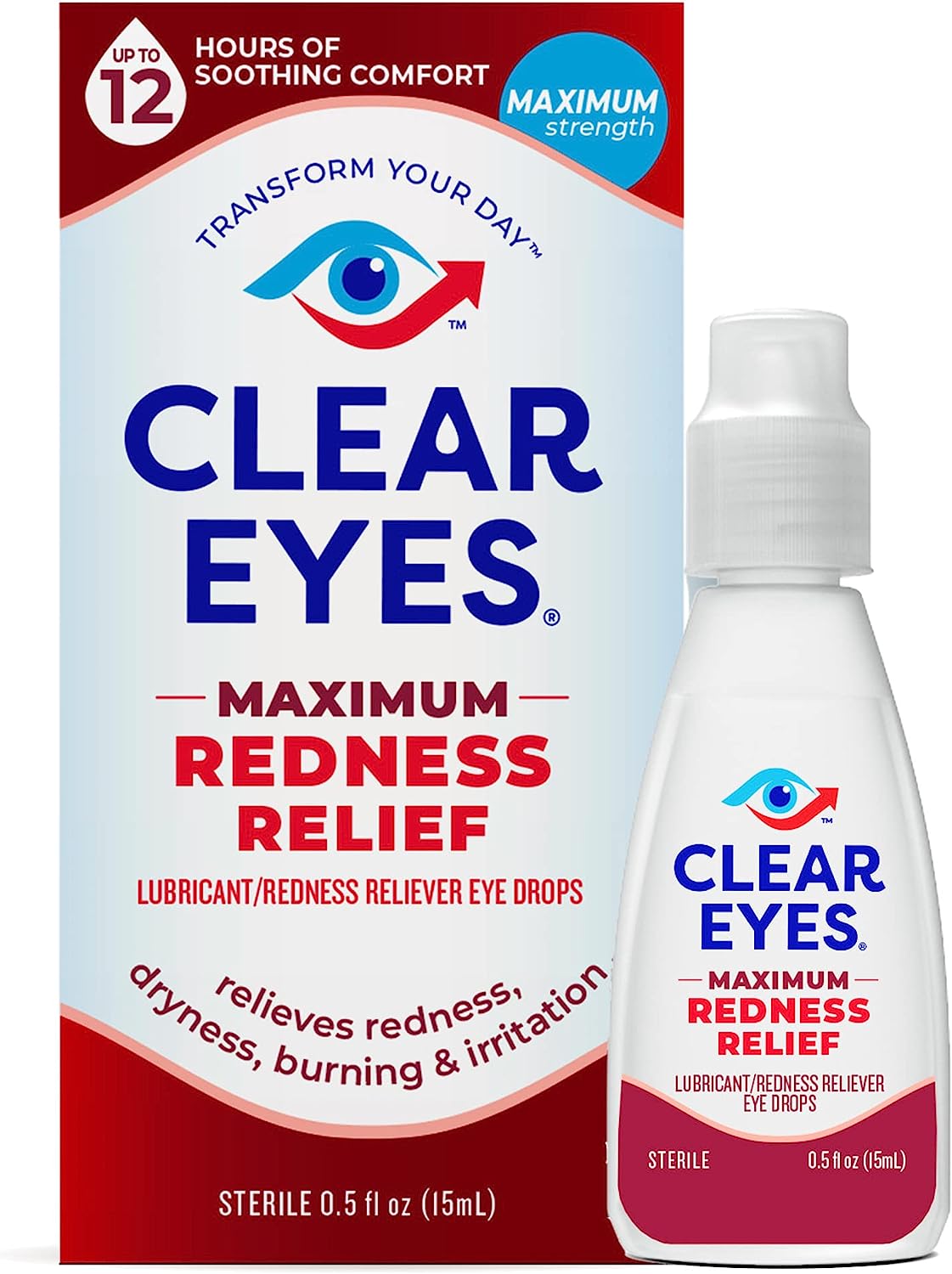 Clear Eyes Maximum Redness Relief Eye Drops provide maximum strength relief from redness and irritation and up to 12 hours of soothing comfort. Clear Eyes Maximum Redness Relief Eye Drops contain the maximum strength redness relief available without a prescription. Clear Eyes Maximum Redness Relief Eye Drops soothe and moisturize to relieve irritation, burning and dry eyes and help to protect against further irritations. Clear Eyes Maximum Redness Relief Eye Drops are clinically proven to whiten eyes for a difference you can see (compared to untreated eyes). As the number 1-selling brand of eye drops, Clear Eyes has provided consumers with a line of OTC eye drops for relief of a range of eye irritations. Clear Eyes Eye Drops are specially formulated to soothe a range of conditions including red, itchy, burning, gritty, irritated and dry eyes. All Clear Eyes products provide up to 12 hours of soothing comfort. Clear Eyes products are FSA- and HSA-eligible in the U.S.