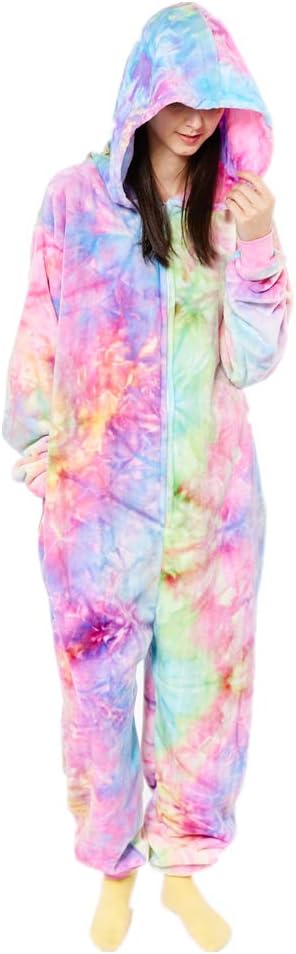 COSUSKET Snug Fit Flannel Onesie Pajamas for Women Tie Dye Costume