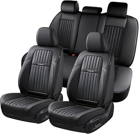 Coverado Car Seat Covers Full Set, Seat Covers for Cars, Black Car Seat Cover, Car Seat Protector, Nappa Leather Car Seat Cushion, Waterproof Car Seat Covers Front Seats and Back Fit for Most Cars