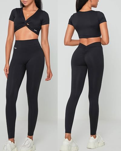 Danysu Women's V Cut Leggings for Women V-Back Scrunch Butt Leggings Soft High Waisted Booty Tights Workout Gym Yoga Pants Black M