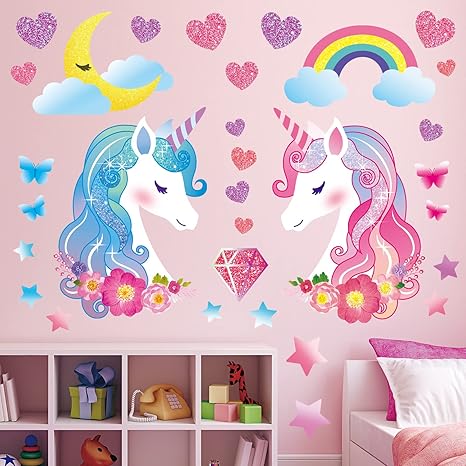 DECOWALL DS8-8068 Unicorn wall stickers decals kids bedroom d�©cor girls room pink furniture for toddler decorations princess poster art baby nursery