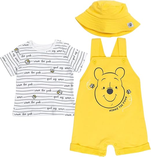 Disney Tigger Winnie The Pooh Baby French Terry Short Overalls T-Shirt and Hat 3 Piece Outfit Set Newborn to Infant