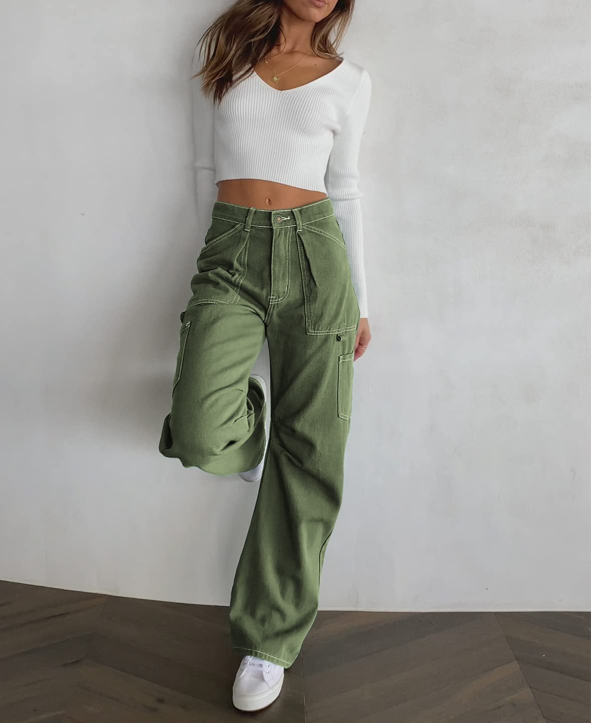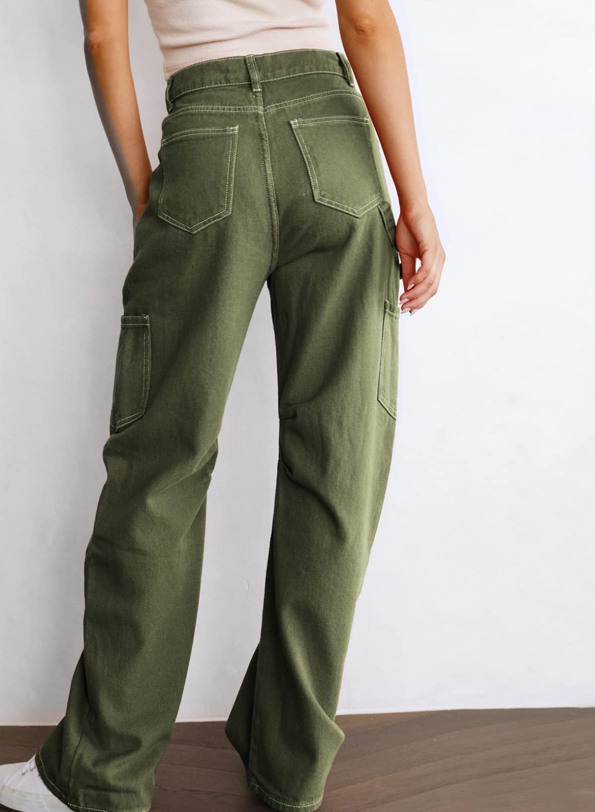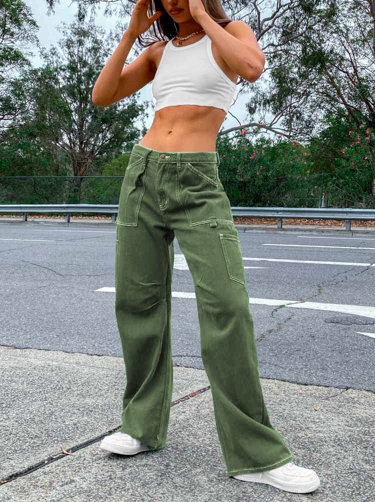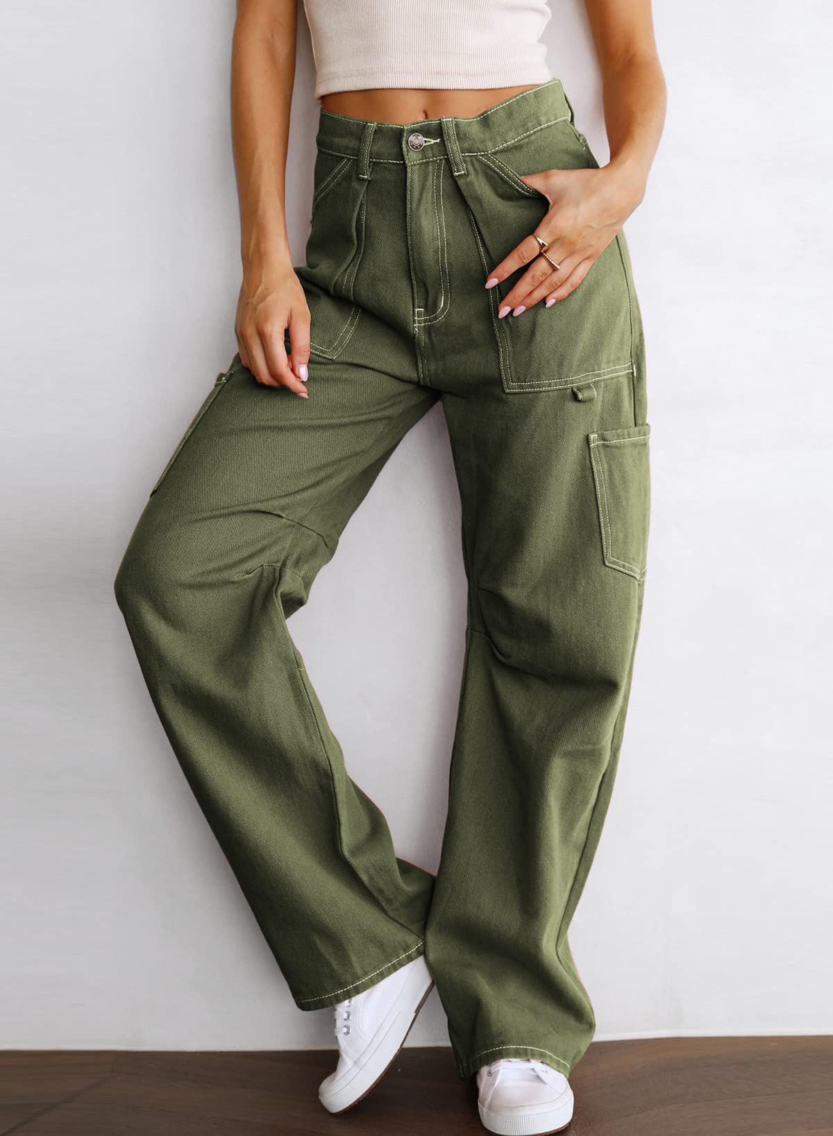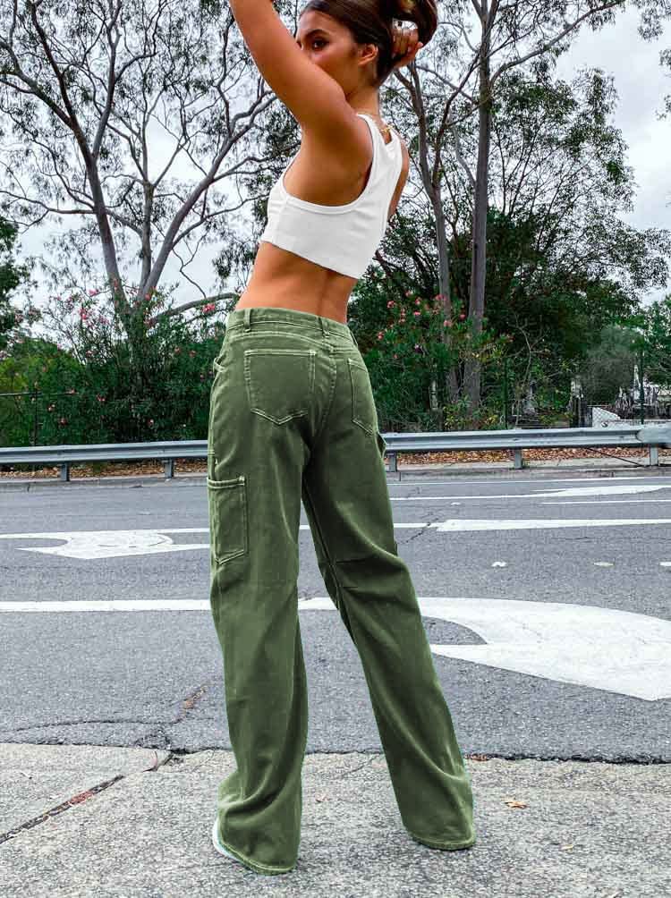 Dokotoo Cargo Pants Women High Waisted Baggy Wide Leg Dress Pants Women Womens TrousersPants Straight Leg Jeans for Women Trendy Baggy Y2K Trousers with Pockets Green