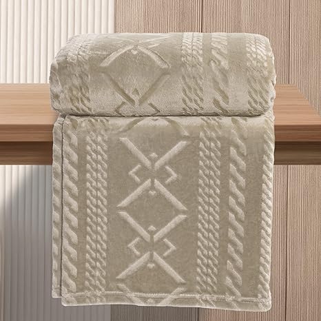 Exclusivo Mezcla Soft Throw Blanket for Couch, 50x60 Inches Flannel Fleece Blanket, Lightweight Decorative Geometry Pattern Plush Blankets for All Season, Champagne Blanket