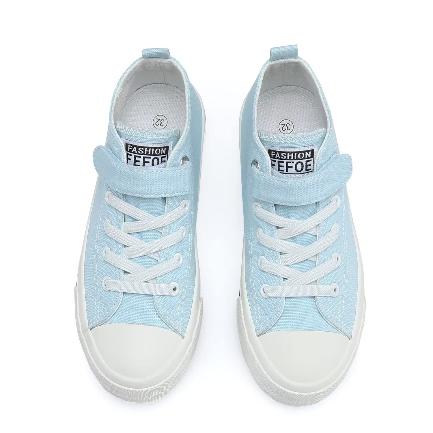 Fefoe Girls Canvas Sneakers Boys Blue Running Tennis Canvas Shoes Kids Athletic Walking Shoes School Students Sports Shoes Big Kid Plus Size 3