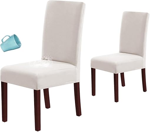 H.VERSAILTEX 100% Waterproof Dining Chair Covers Stretch Chair Covers for Dining Room Set of 2 Parson Chair Slipcovers Chair Protectors Covers Dining, Soft Thick Solid Fleece Fabric Washable, Ivory