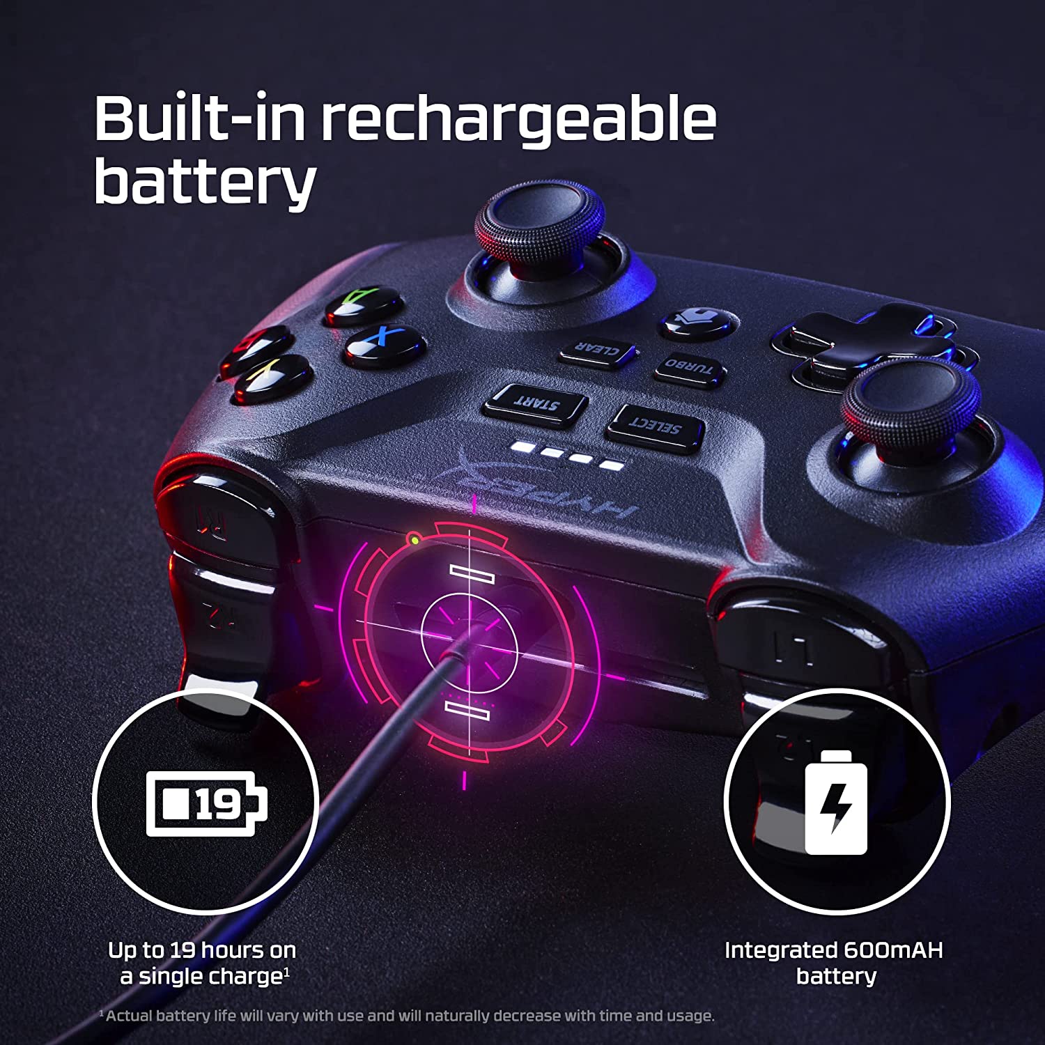 Get better control of your mobile gaming with the HyperX Clutch wireless gaming controller. With its comfortable grip, directional pad, buttons, and analog sticks, it’ll put the joy back into your mobile gaming. The versatile mobile clip fits a wide variety of phones, and also connects wirelessly to other devices like tablets and PCs. With up to 19 hours(1) of battery life, you’ll get plenty of gaming in before it needs to recharge. 1. Actual battery life will vary with use and will naturally decrease with time and usage.