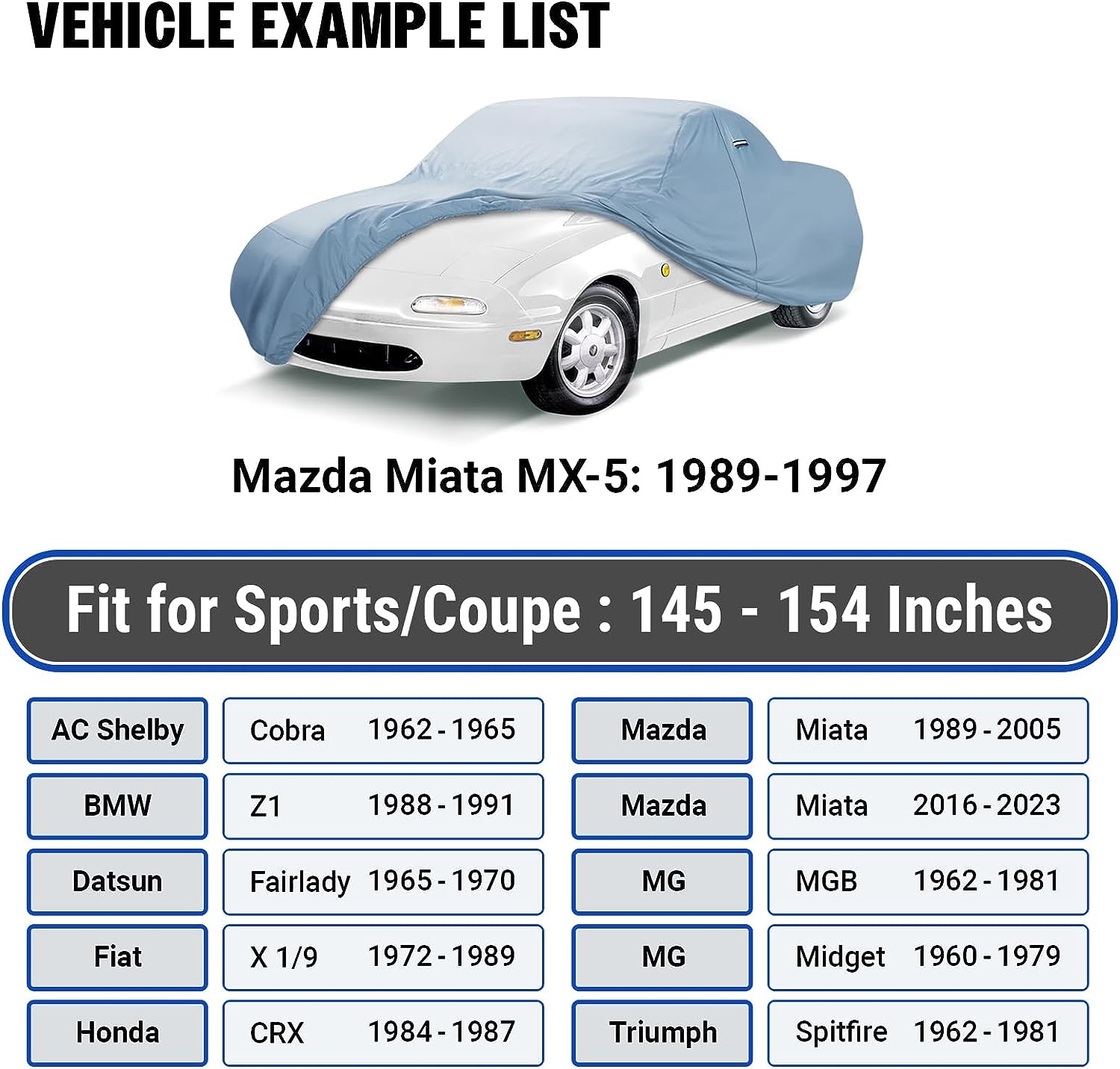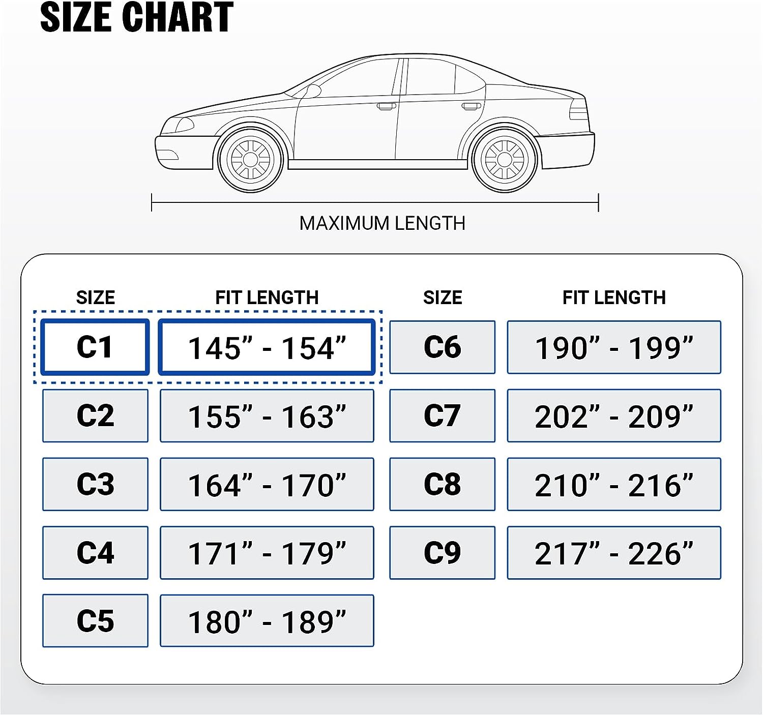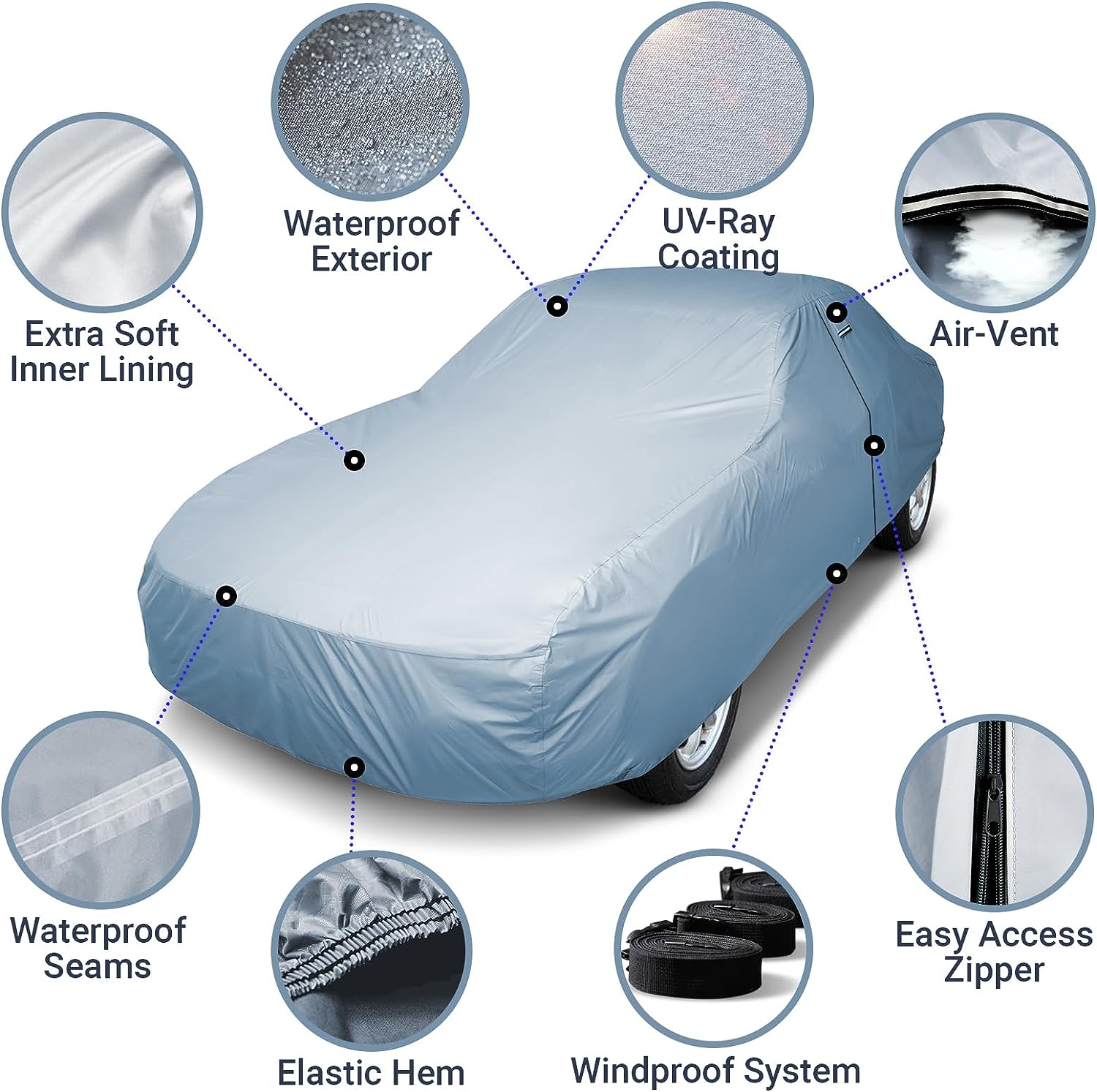 • Professional Design: Best fit and best protection sedan car cover. Each heavy duty car cover is tested to fit every car model and make to achieve a custom-like fit suitable for every model of Toyota, Ford, Chevrolet, Honda, Nissan, Cadillac, Kia, Hyundai, Tesla, Audi, BMW, and Mercedes.