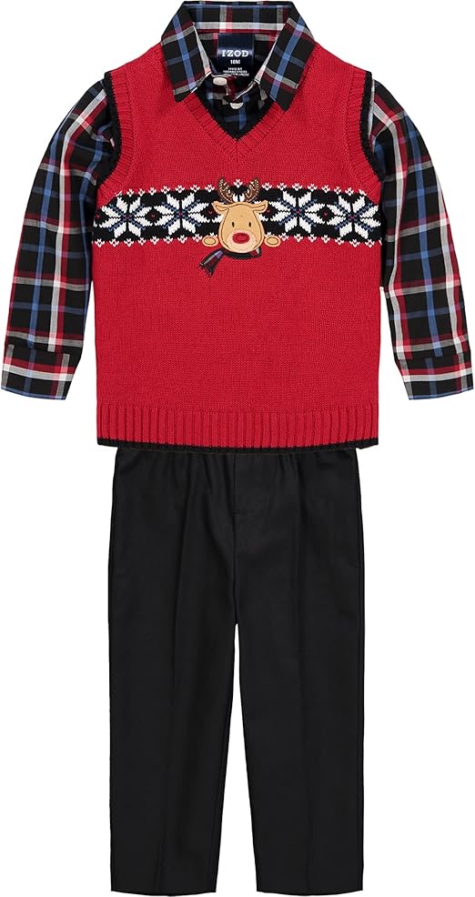 IZOD Baby Boys' 3-Piece Sweater Vest Set with Sweater, Collared Dress Shirt, and Pants