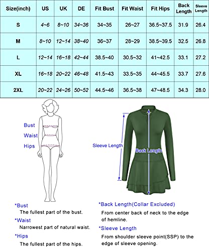 JACK SMITH Dresses for Women Long Sleeve Yoga Dress Running Outdoor Shirts with Thumb Holes Army Green L