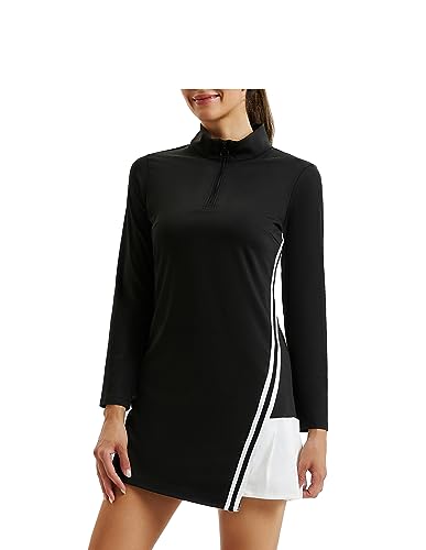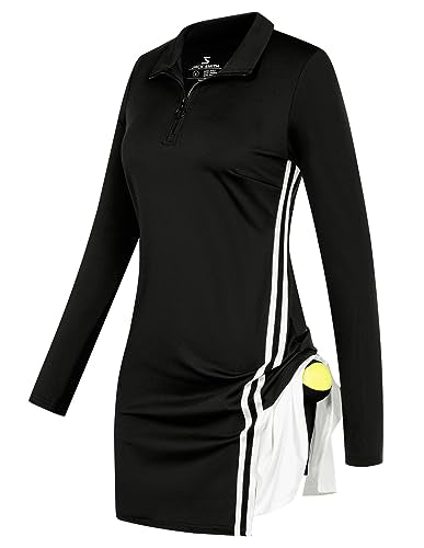 JACK SMITH Golf Athletic Dress for Women with Shorts and Sleeves with Collar Zipper Gift Athleisure Black S