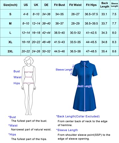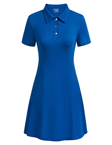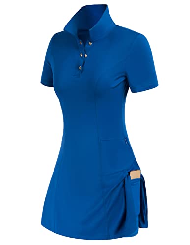 JACK SMITH Golf Dress for Women Athletic Tennis Dress with Built in Shorts Short Sleeve Polo Sport Dress Golf Apparel with 4-Pockets Blue Small